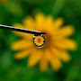 The lady has a blue and green eye